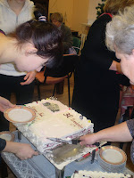 ....no i przyszedł czas na urodzinowe torty. Za ten olbrzymi, z fotografiami przedstawiającymi nasz dom, dziękujemy Panu Kosowskiemu, właścicielowi obornickiej cukierni "Beza". Natomiast mniejszy autorstwa naszego Andrzeja również prezentował się wspaniale...